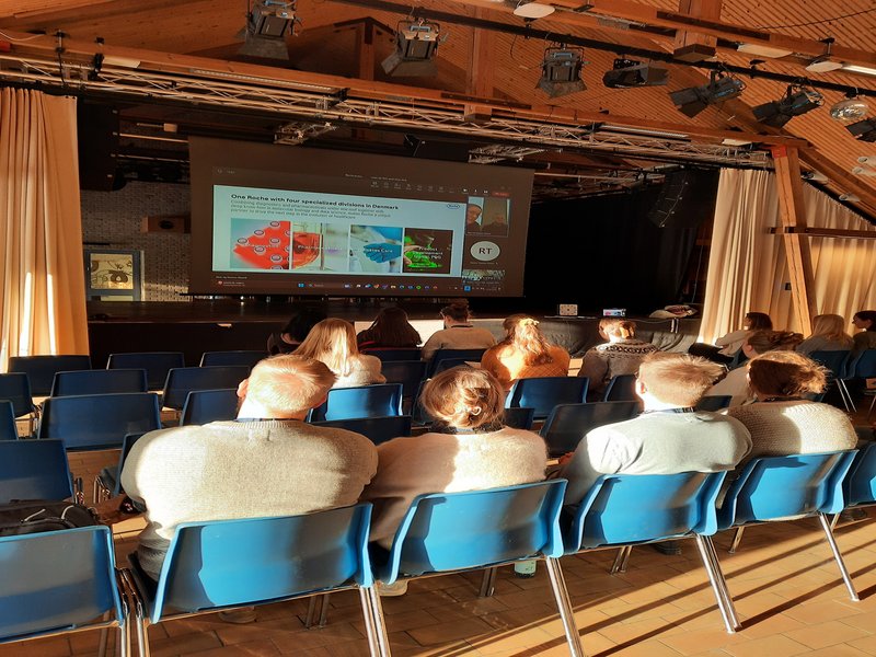 In a very interactive learning environment, the participants got an extensive range of tools and methods to foster innovative thinking and a collaborative mindset around company cases presented by Roche. The 9 teams went into solution mode – and even got to test their solutions by acting out a user scenario before preparing a pitch.
